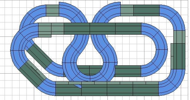 Te he diseñdo un circuito usando solo pistas de tu inventario, pero tienes que recrecer el tablero con un liston prque la dimension se ha ido exactamente a 2,39 x 1,28, las pistas con borde son las de SCX antiguo y las que no lo tienen as del SCX nuevo ( las mismas pistas del sistema digital)