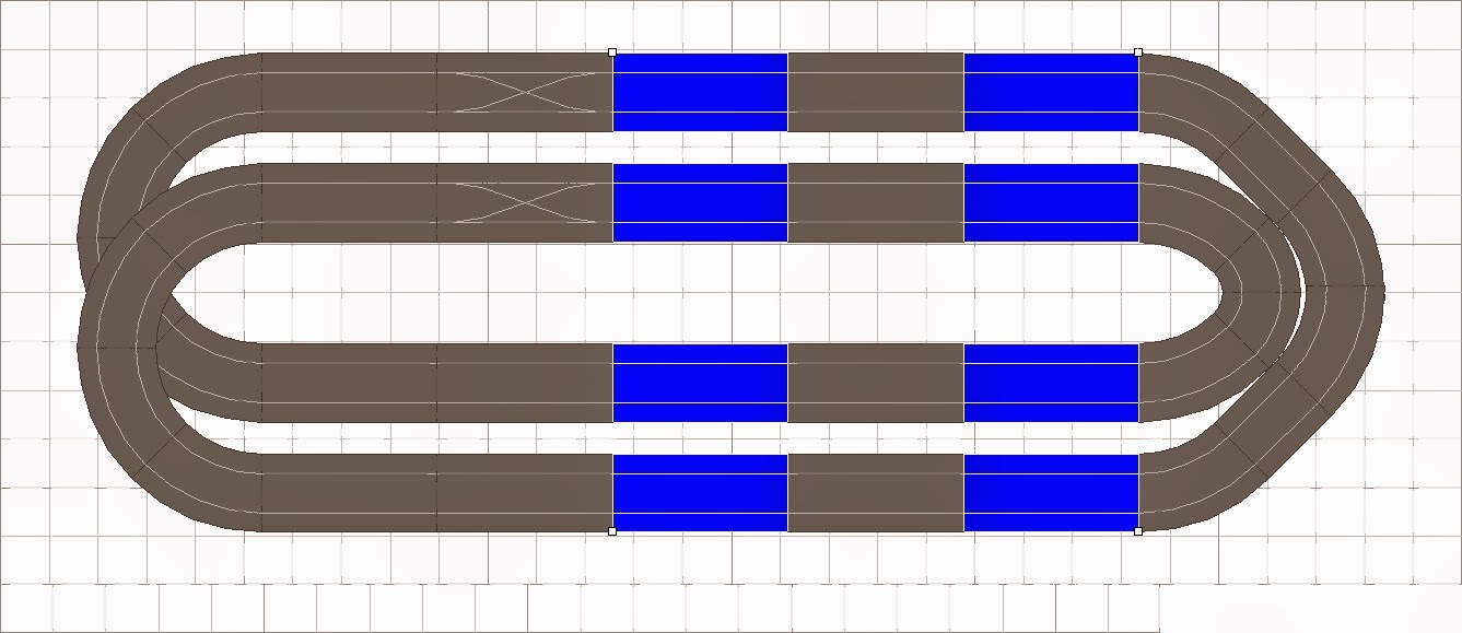 Si no se ponen las pistas de cruce el carril exterior queda de 12,00m y el interior de 10,50m ganando todas las carreras el mismo coche.